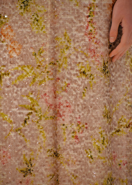Femminile e romantico , questo abito lungo scivolato firmato Alberta Ferretti , è interamente ricoperto di paillettes stampate con un poetico motivo floreale ,in linea con il tema botanico di questa collezione. Un capo luminoso con stile e raffinatezza tutta Made in Italy.