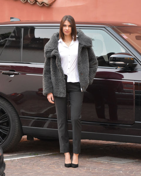 Giubbino in  Vera Piuma con dettagli in Eco Pelliccia firmato RRD . Il capo spalla presenta un taglio contemporaneo con dettagli ricercati sportivi  .La silhouette e la costruzione originale del davanti e delle maniche , impreziositi da eco pelliccia teddy calda ed avvolgente. Il retro presenta i canali tubici che contengono l'imbottitura in morbida e calda piuma d'anatra ,dal grande confort e leggerezza. Il cappuccio ,ampio e scenografico, combina le due texture avvolgendo il viso e conferendo al design un'allure unica e sofisticata . Il tutto lo rende perfetto per uno stile sporty chic .